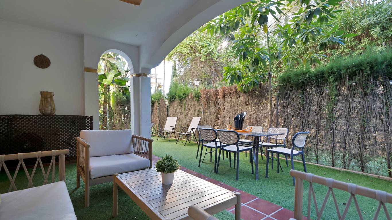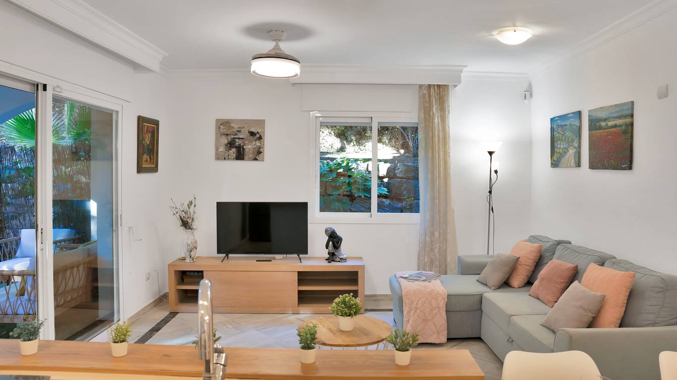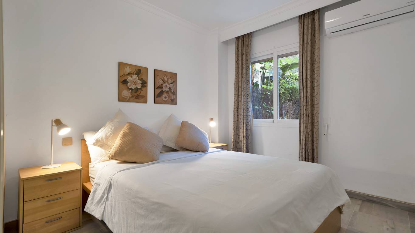 We present this beautiful property located in one of the most sought-after and prestigious areas of Marbella: the iconic Golden Mile, an enclave where luxury, comfort, and quality of life blend seamlessly.Just 800 meters from the beach, you can enjoy the Mediterranean with a pleasant 10-minute walk. The property is surrounded by all essential and high-end services: supermarkets, restaurants, national and international schools, institutes, pharmacies, bus stops, and the iconic Marbella Club and Puente Romano hotels. A privileged location that allows you to walk to the city centre and enjoy everyday life with total convenience.Connectivity is excellent: 5 minutes by car from Puerto Banús, the same distance from Marbellas town centre and Old Town, and with immediate access to the motorway. Málaga Airport is only 35 minutes away.The property is located within a gated community built in 2002 that offers security, well-maintained gardens, a communal pool, and a paddle courtmaking this home a gem for those seeking comfort, style, and quality.This west-facing ground-floor apartment is perfect for enjoying the afternoon sun and features a charming 20 m porch and private garden, providing privacy and a cosy atmosphere.The total built area of 117 m is distributed as follows:Spacious living-dining room filled with natural lightModern open-plan kitchen, completely renovated in 20232 bedrooms and 2 full bathroomsPrivate garden, ideal for relaxing or entertaining guestsAdditionally, it includes an underground parking space with direct access to the apartment via a lift, offering maximum convenience. The property is equipped with air conditioning, heating, and is adapted for people with reduced mobility.A unique opportunity thanks to its PREMIUM location on the Golden Mile. Perfect as an investment, holiday home, or permanent residence. High rental profitability due to strong demand in the area throughout the year. Ideal for those seeking to elevate their quality of life or invest in one of the most promising areas of the Costa del Sol.A property with Mediterranean charm, where modern comfort meets the exclusivity of Marbella.The abbreviated information document is available. Expenses: Taxes (ITP or VATAJD) Notary and Land Registry fees.BRF