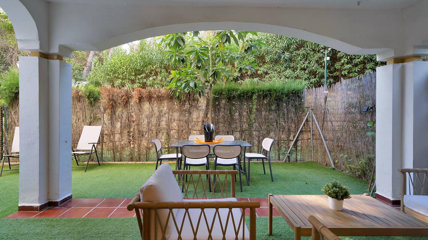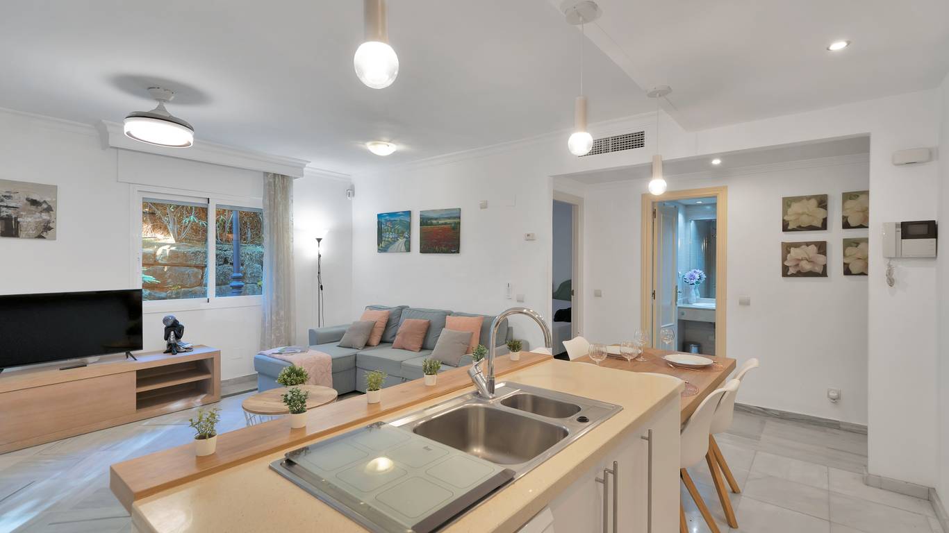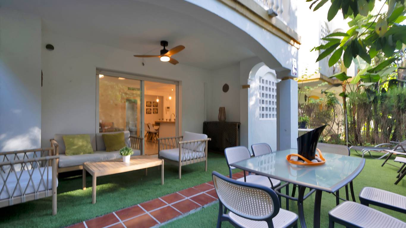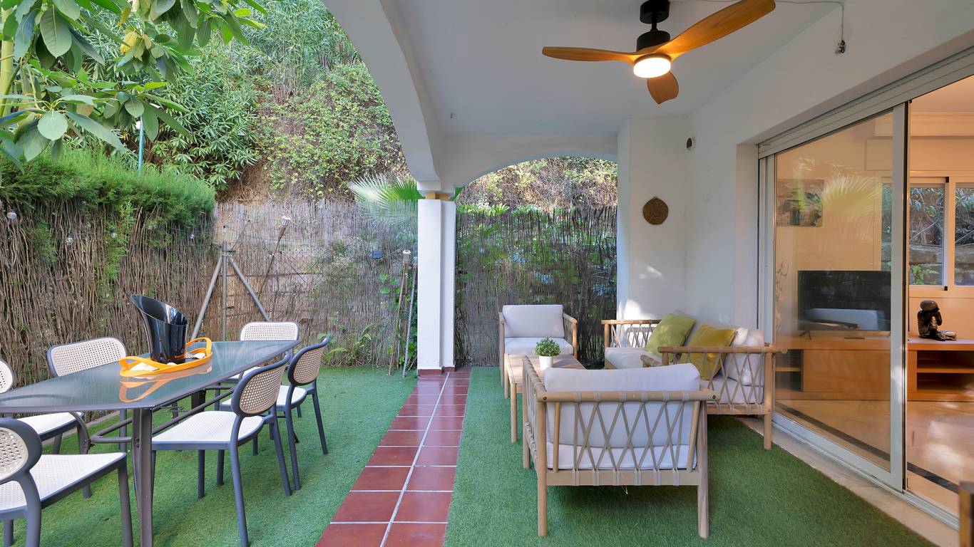 We present this beautiful property located in one of the most sought-after and prestigious areas of Marbella: the iconic Golden Mile, an enclave where luxury, comfort, and quality of life blend seamlessly.Just 800 meters from the beach, you can enjoy the Mediterranean with a pleasant 10-minute walk. The property is surrounded by all essential and high-end services: supermarkets, restaurants, national and international schools, institutes, pharmacies, bus stops, and the iconic Marbella Club and Puente Romano hotels. A privileged location that allows you to walk to the city centre and enjoy everyday life with total convenience.Connectivity is excellent: 5 minutes by car from Puerto Banús, the same distance from Marbellas town centre and Old Town, and with immediate access to the motorway. Málaga Airport is only 35 minutes away.The property is located within a gated community built in 2002 that offers security, well-maintained gardens, a communal pool, and a paddle courtmaking this home a gem for those seeking comfort, style, and quality.This west-facing ground-floor apartment is perfect for enjoying the afternoon sun and features a charming 20 m porch and private garden, providing privacy and a cosy atmosphere.The total built area of 117 m is distributed as follows:Spacious living-dining room filled with natural lightModern open-plan kitchen, completely renovated in 20232 bedrooms and 2 full bathroomsPrivate garden, ideal for relaxing or entertaining guestsAdditionally, it includes an underground parking space with direct access to the apartment via a lift, offering maximum convenience. The property is equipped with air conditioning, heating, and is adapted for people with reduced mobility.A unique opportunity thanks to its PREMIUM location on the Golden Mile. Perfect as an investment, holiday home, or permanent residence. High rental profitability due to strong demand in the area throughout the year. Ideal for those seeking to elevate their quality of life or invest in one of the most promising areas of the Costa del Sol.A property with Mediterranean charm, where modern comfort meets the exclusivity of Marbella.The abbreviated information document is available. Expenses: Taxes (ITP or VATAJD) Notary and Land Registry fees.BRF