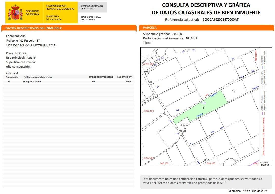 Le ofrecemos terreno de 3393m2 en la huerta del Barrio el Progreso y Los Garres, ideal para hacer tu vivienda independiente y cerca de todos los servicios.