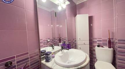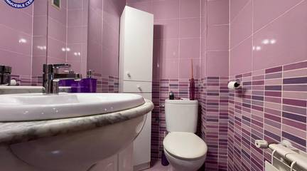 The sleeping area offers three double bedrooms and an additional office room, all with fitted wardrobesideal for families, remote work, or guests. The flat is completed by a toilet and a full bathroom with shower tray.