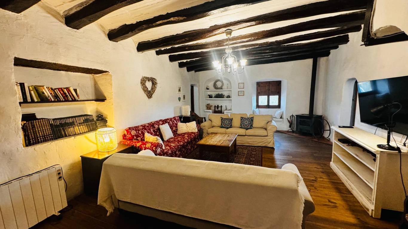 La Finca construida en el Siglo XII, consta de 8 dormitorios, con una construcción principal 687 m2, 6 baños, 2 salas de estar, zona de barbacoa, piscina, vistas panorámicas, una sala para eventos de aproximadamente 120 m2, capacidad máxima de 24 personas.
