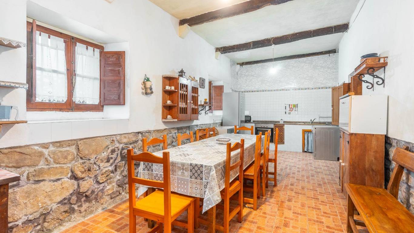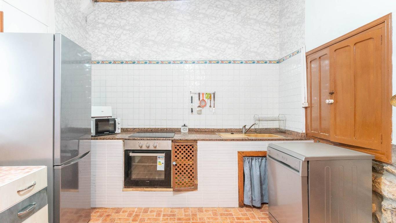Amplia casa de piedra distribuida en tres plantas, con 5 habitaciones dobles y 3 baños completos, preparada para 10 plazas turísticas. Dispone de salón-comedor, cocina equipada, jardín privado y zona de barbacoa.
