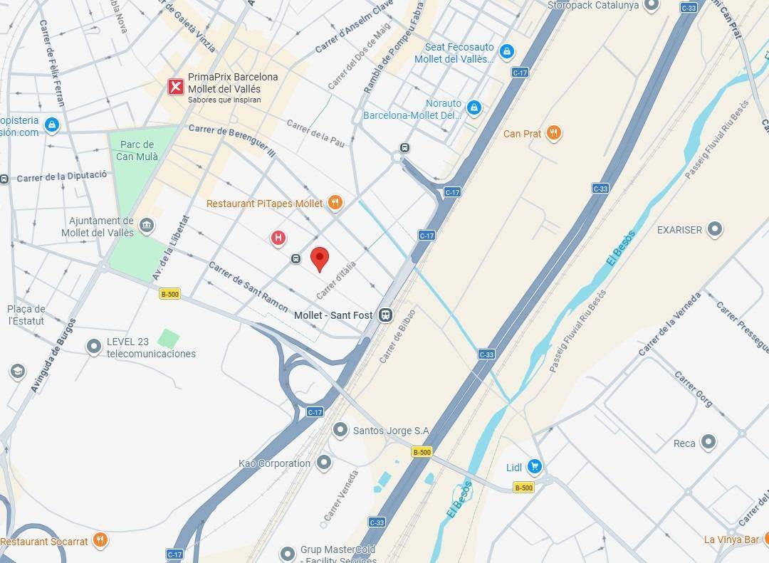 Paradas de autobus: Berenguer III - Museu Abelló - 160m; Estació de França - 170m; Estació Rodalies Mollet - Sant Fost - 220m; avinguda de Badalona - 260m