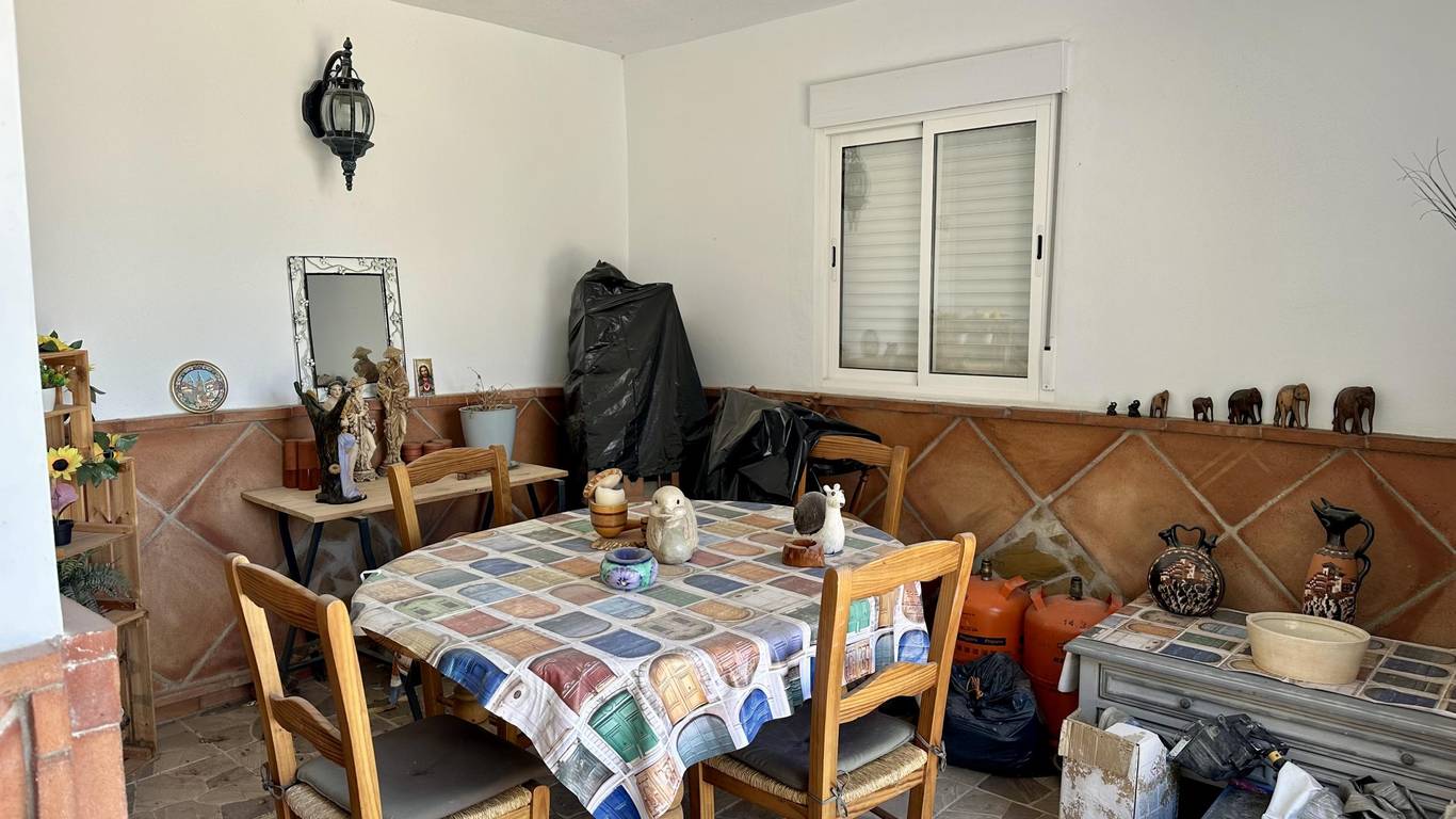 Wonderful Detached Villa in the Heart of ManilvaThis charming three-storey detached home invites you to enjoy Andalusian charm in a peaceful residential complex with a swimming pool, just steps from the center of Manilva.Upon arrival, you're welcomed by a sunny south-facing patio of approximately 60 m, featuring elegant traditional-style columns, a covered terrace, and a perfectly integrated storage room.Inside, a hallway leads to a bathroom with shower, and further on, it opens up to a warm living room with a fireplace and an open-plan kitchen. The separate dining area connects to a terrace with a barbecue ideal for sharing outdoor moments.A lower level offers another terrace of about 40 m with an independent room, outdoor shower, and laundry area.From the living room, a beautiful spiral staircase leads to the first floor, where youll find two bedrooms with built-in wardrobes and a modern bathroom with shower.Finally, on the top floor, a lovely rooftop terrace of around 30 m offers open views of the mountains, countryside, and sea, a perfect spot to breathe and disconnect.You have at your disposal the abbreviated information document. Costs: Taxes (ITP or VAT AJD) Notary and registry fees.NGS