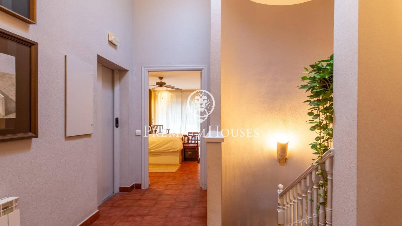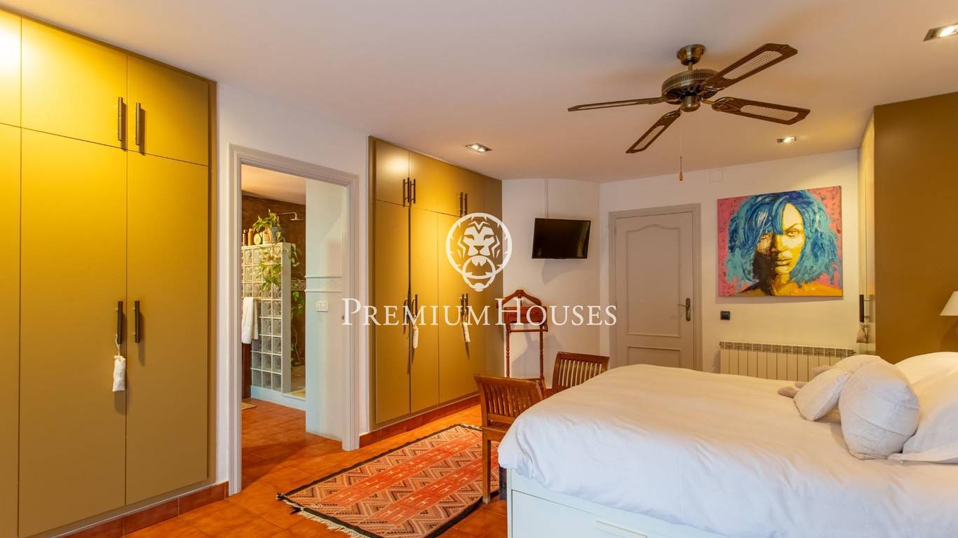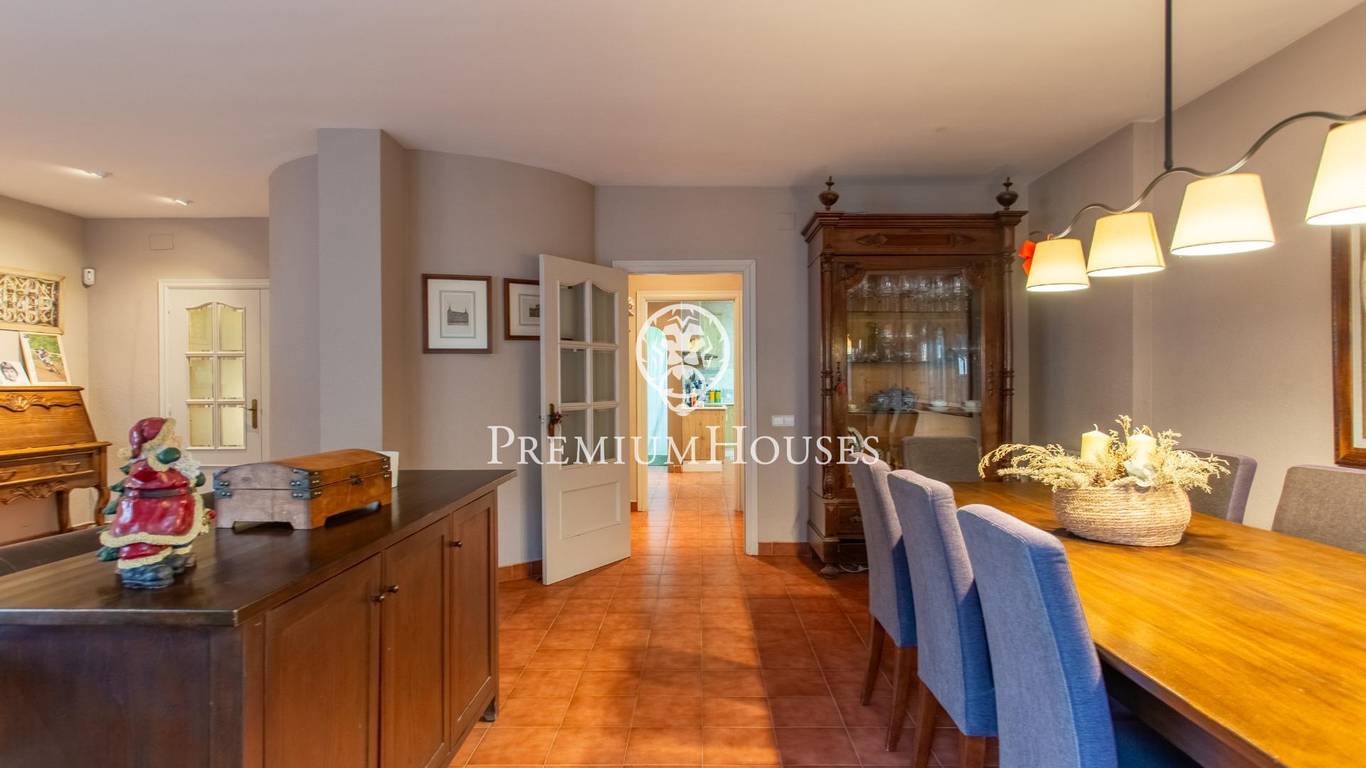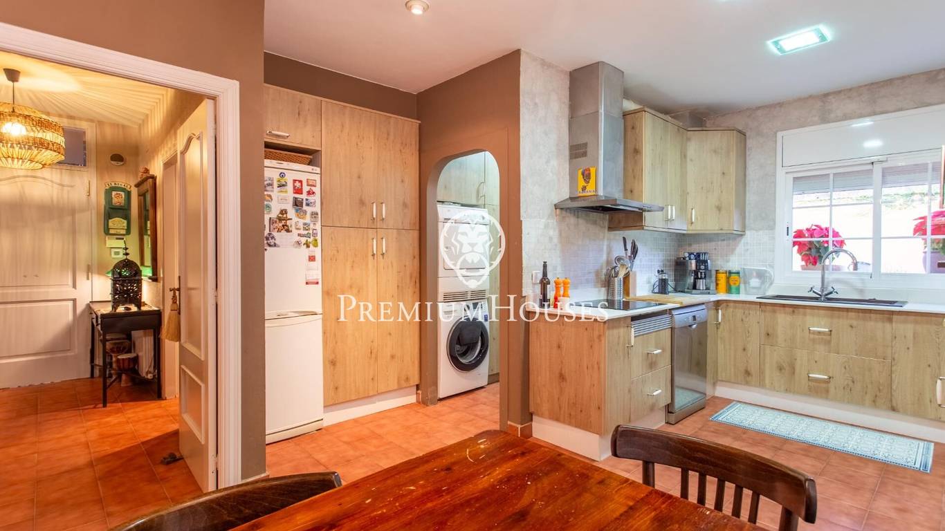 В нескольких метрах от центра города Cabrera de Mar расположился этот впечатляющий дом. Всего в 30 минутах от Барселоны Дом площадью 340 м2, сконструирован на 3 этажах, стоит на участке с красивым садом позади дома, к которому можно пройти через боковой холл дома или из кухни. На этаже на уровне входа расположен боковой коридор, проходящий от входа и ведущий в сад. В его середине расположена входная дверь в дом, большая прихожая, от которой можно пройти во все комнаты на этом этаже. Справа находится очень просторная столовая с красивой гостиной с большими окнами, выходящими на юг, и камином, чтобы придать ей еще больше тепла. Столовая очень просторная для ужинов большой семьи. По другую сторону холла расположена просторная меблированная кухня с обеденной зоной. Рядом с ней - прачечная, из которой есть выход в сад. Также на этаже еще есть комната и санузел. На первом этаже расположились спальная зона, с тремя спальнями, все двухместные, а главная - трехместная, с зоной шкафов и встроенной ванной комнатой, в которой есть оригинальный душ. Из спальни открывается невероятный вид на горы. На этаже есть еще одна ванная комната с ванной. И наконец, что не менее важно: нижний этаж, на котором есть открытое пространство почти 70 м2 в качестве винного погреба, гостиной или любого другого назначения, которое можно использовать на ваше усмотрение. Также гараж около 45м2 с вместимостью как минимум на 2 машины и большой складской площадью. Следует отметить большое количество качественных деталей (полы из натурального керамогранита, газовое отопление, несколько каминов и особенно лифт), что делает этот дом эксклюзивной собственностью. Открытая площадка безупречная, удобная и функциональная. С одной стороны - великолепное пространство для отдыха , с установленным деревянным навесом, в котором можно обедать и ужинать с семьей или друзьями. Садовая территория застелена практичной искусственной травой.